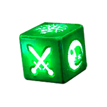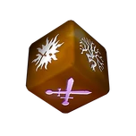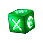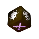Когда экипирован Рубин: Удар + Взрыв (-1 Здоровье у противника, +1 дополнительный бросок за первый Меч) |