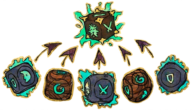 Вселенной Армелло управляют природные элементы противоположностей; Луна & Солнце, Меч & Щит, Гниль & Дерево Сил Природы. Эти символы украшают каждую грань армеллианского кубика. Каждая Карта в Армелло также имеет один из этих символов в правом верхнем углу.